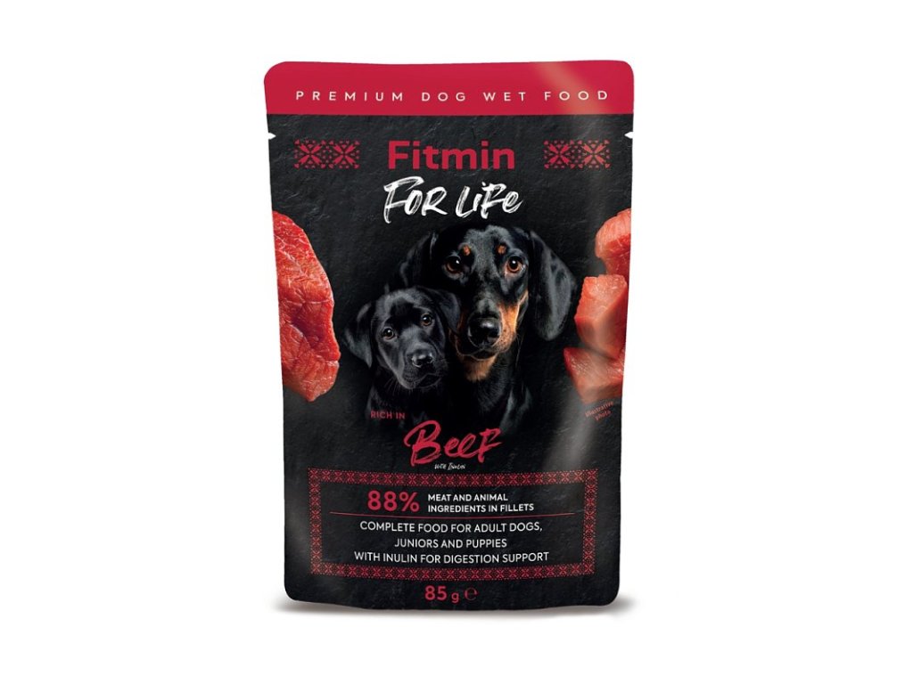 Fitmin For Life Saszetka z wołowiną i inuliną dla szczeniąt i dorosłych psów 85 g
