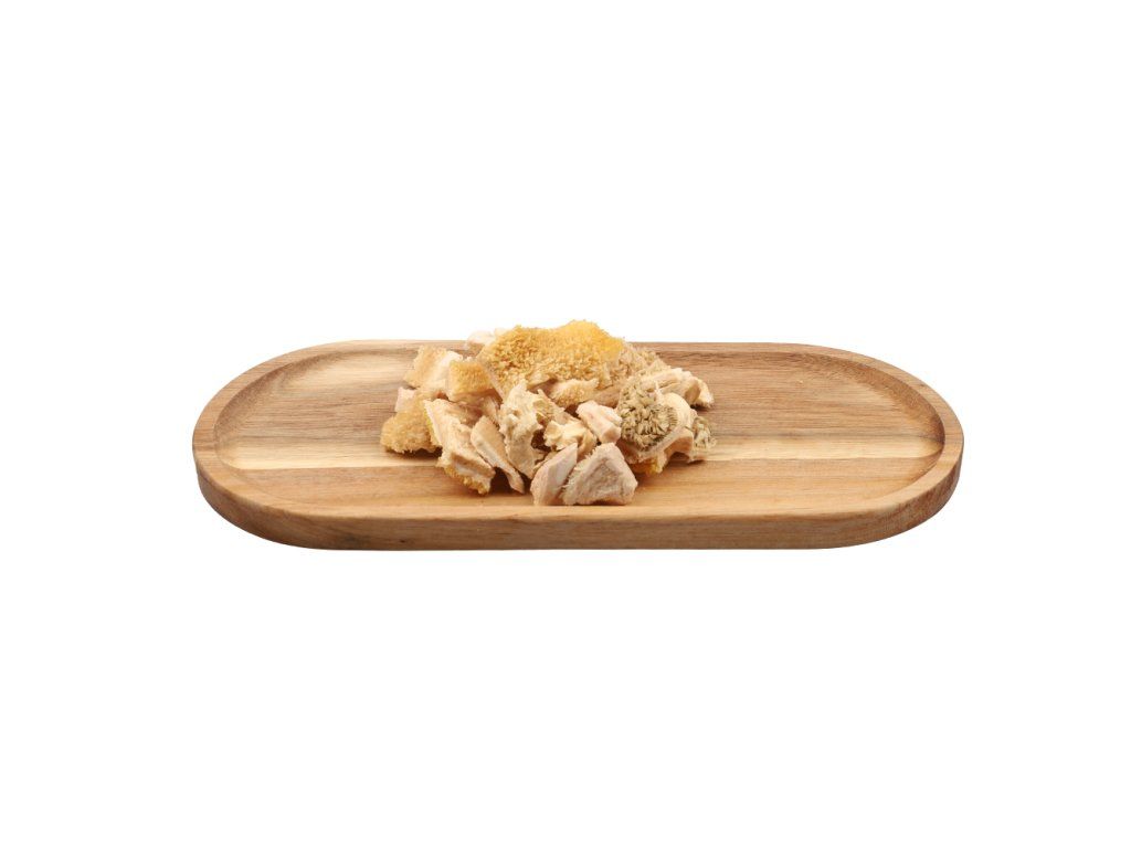 Aromatyczne kawałki ze 100% wołowych żołądków — kawałki, dzięki którym Twój pupil posłucha za każdym razem. Dzięki delikatnemu suszeniu mrozem (liofilizacji) mięso zachowuje naturalny smak, zapach i strukturę, motywując już od pierwszego powąchania. Wołowe flaki są wartościowe odżywczo, mają wysoką zawartość białka i niską wartość energetyczną. Monobiałkowy skład bez zbóż, barwników i konserwantów sprawdzi się także u wrażliwych smakoszy. Kawałki można łatwo podzielić na mniejsze części. Przetworzone i ręcznie pakowane w Czechach, u podnóża Gór Orlickich.