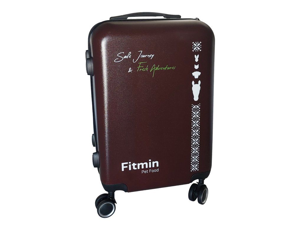 Walizka z logo Fitmin Fresh Journey stworzona dla wszystkich, których czeka nowa przygoda. Wykonana z wytrzymałego tworzywa sztucznego, doskonale sprawdzi się jako bagaż podręczny. Wyposażona jest w zamek szyfrowy z trzycyfrowym kodem, cztery kółka obracające się o 360° ułatwiające manewrowanie oraz teleskopową rączkę. Wnętrze walizki posiada siatkowe kieszenie i regulowane pasy, które pomagają utrzymać porządek i zabezpieczają zawartość podczas otwierania.